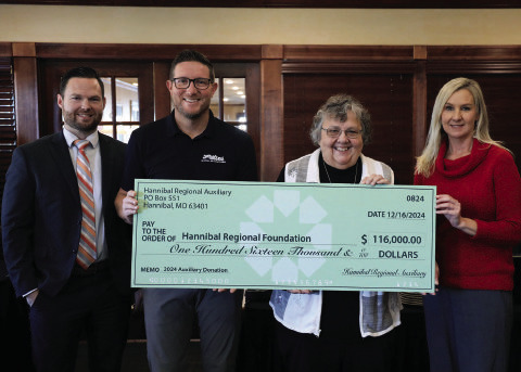 Through multiple special events and fundraisers, in 2024 Hannibal Regional Auxiliary was able to generously support Hannibal Regional Healthcare System. At their December meeting, the Auxiliary presented a check for $116,000.00 to Hannibal Regional Healthcare System, with the funds fulfilling their pledge of $600,000.00 to the Building Better Tomorrows campaign. The Building Better Tomorrows campaign raised funds to assist with major renovations and expansion projects. Funds allowed the healthcare system to increase surgical capacity, expand and improve critical care areas and invest in the future through updated delivery rooms.